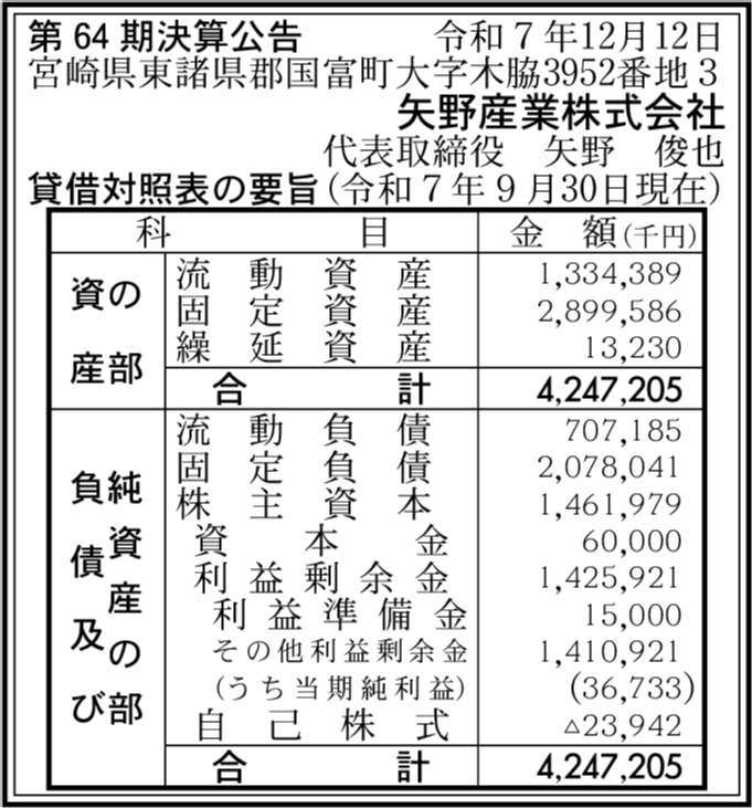 矢野運輸株式会社 宮崎県宮崎市 【2025年9月期】 |