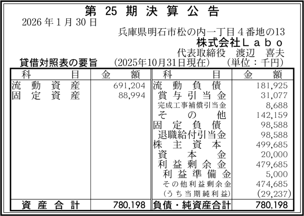 パル建設株式会社 兵庫県明石市 【2025年10月期】 |