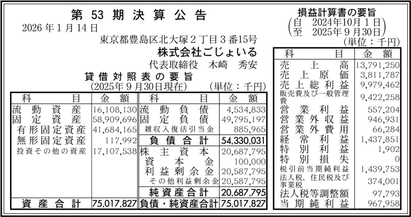 株式会社オー・エル・ジェイ 東京都豊島区 【2025年5月期】 |