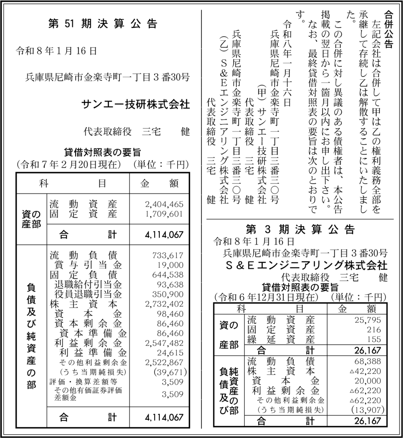S&Eエンジニアリング株式会社 兵庫県尼崎市 【2024年12月期】 |