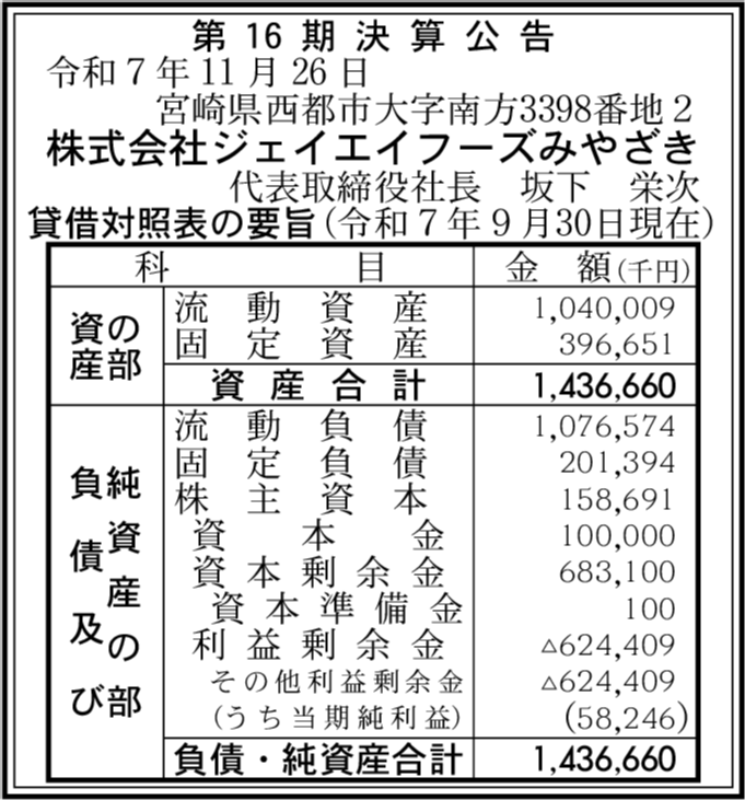 株式会社JA物流みやざき 宮崎県宮崎市 【2025年3月期】 |