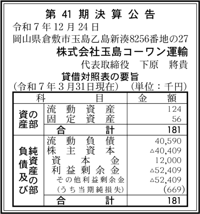 | 会社名 | 株式会社玉島コーワン運輸 |