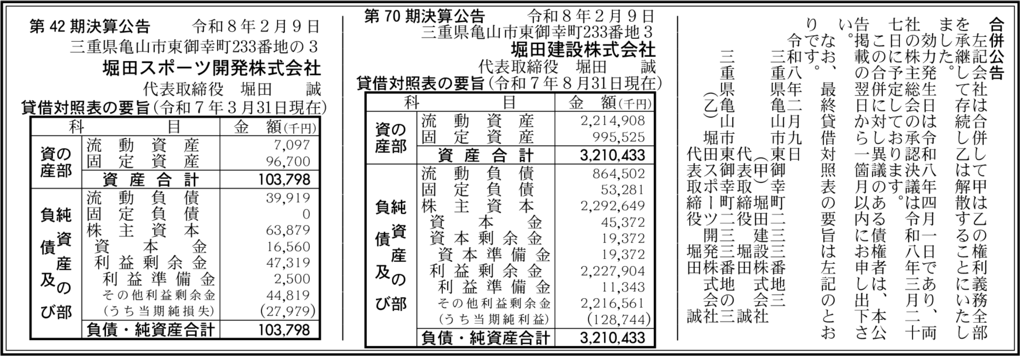 堀田スポーツ開発株式会社 三重県亀山市 【2025年3月期】 |