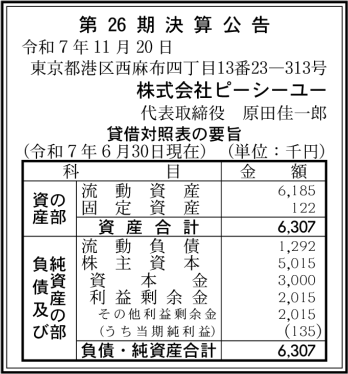 | 利益剰余金 | 201万5,000円 (+7.18%) |