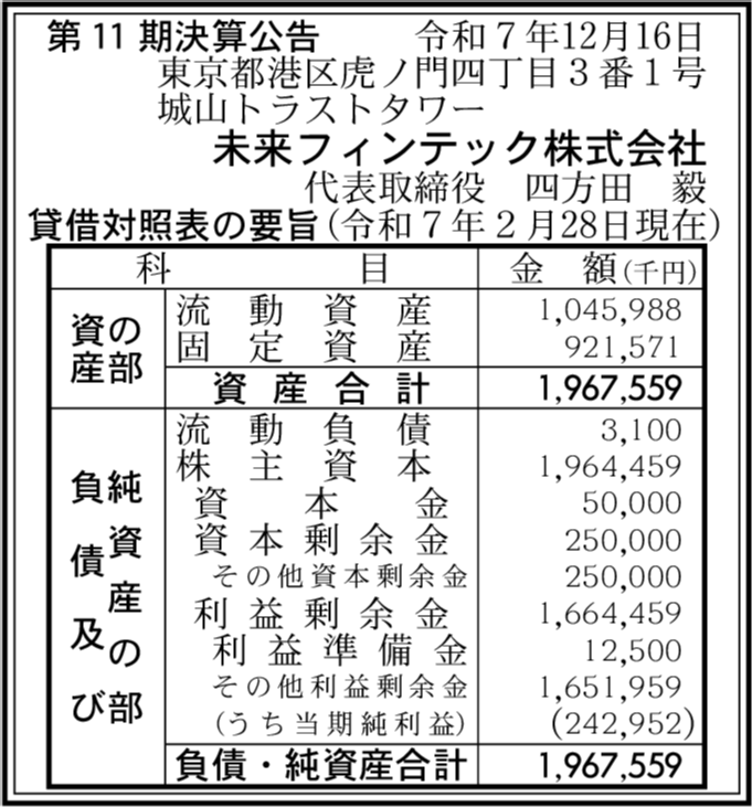 未来トラスト株式会社 東京都港区 【2018年12月期】 |