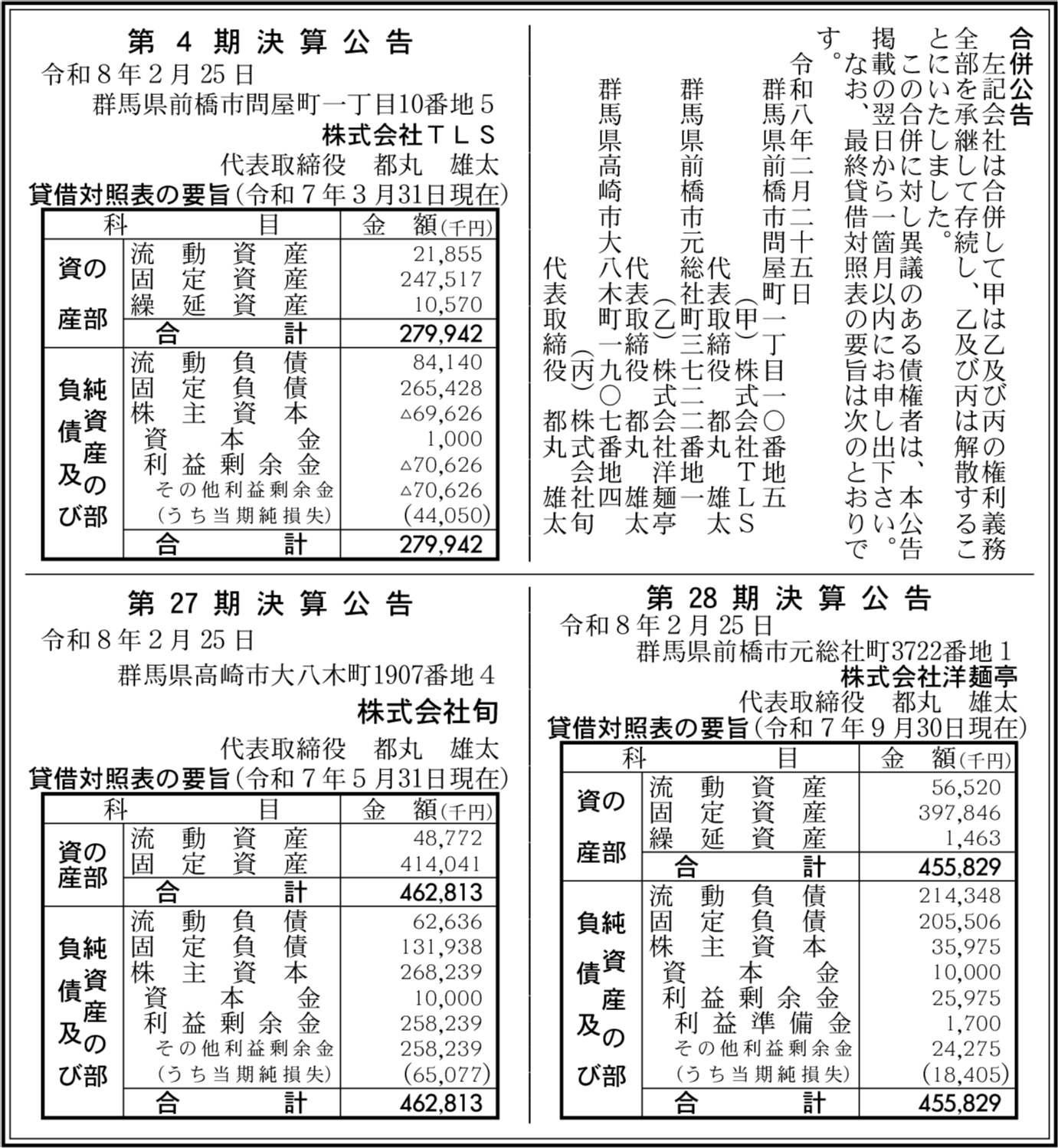 株式会社洋麺亭 群馬県前橋市 【2025年9月期】 |