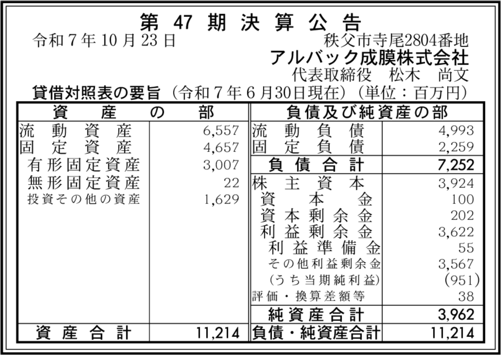| 総資産 | 112億1,400万円 (+4.55%) |