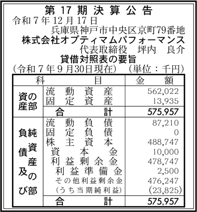 | 会社名 | 株式会社オプティマムパフォーマンス |