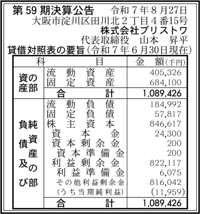 会社名 | 株式会社ブリストワ |
