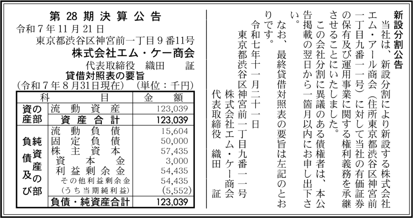 | 会社名 | 株式会社エム・ケー商会 |