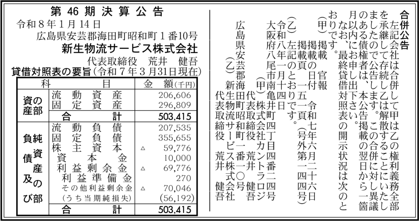| 会社名 | 新生物流サービス株式会社 |