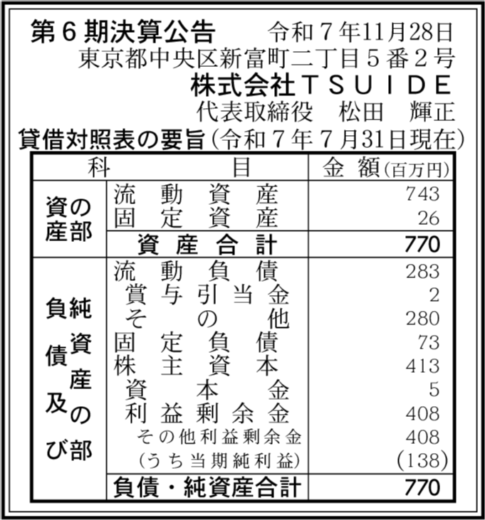| 会社名 | 株式会社TSUIDE |