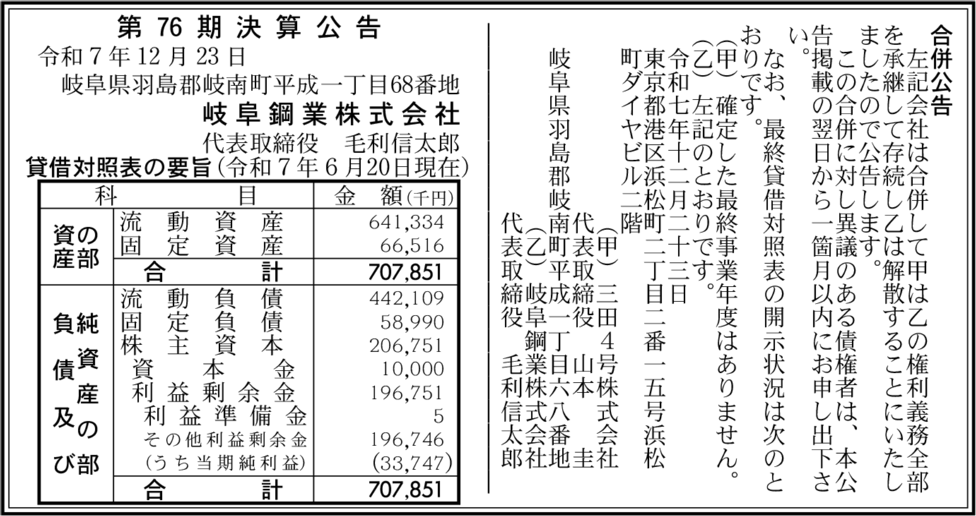 中部公営事業株式会社 岐阜県羽島郡岐南町 【2025年5月期】 |