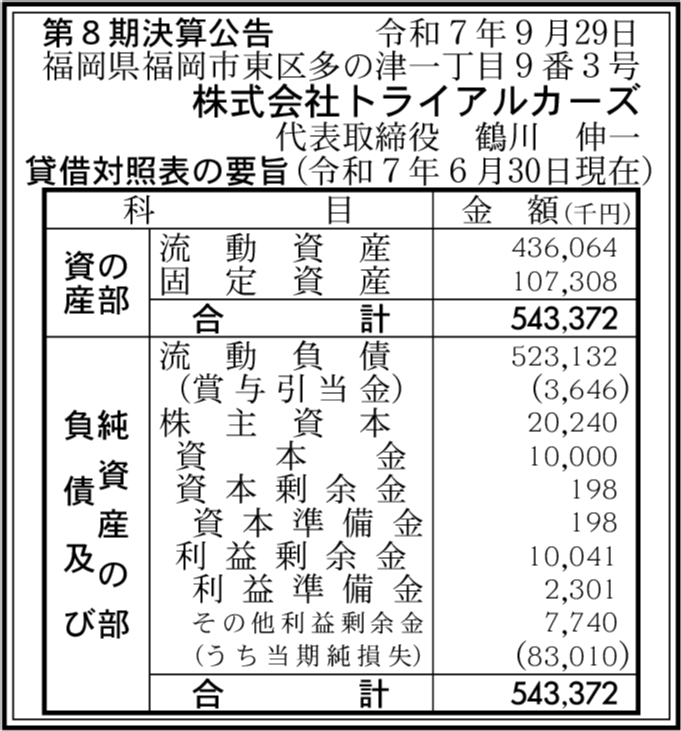 株式会社トライアル開発 福岡県福岡市東区 【2025年6月期】 |