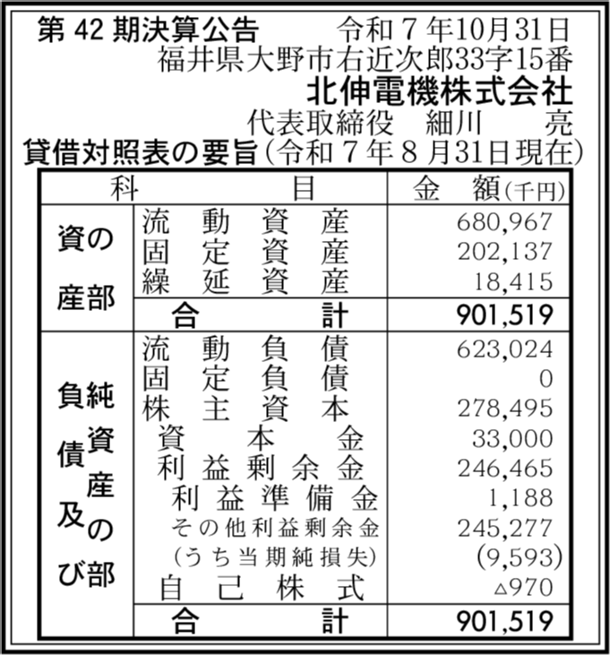 | 利益剰余金 | 2億4,646万5,000円 (▲3.75%) |