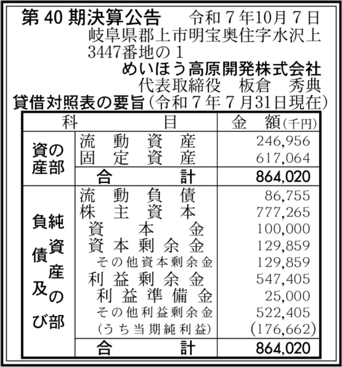 明宝温泉開発株式会社 岐阜県郡上市 【2025年3月期】 |