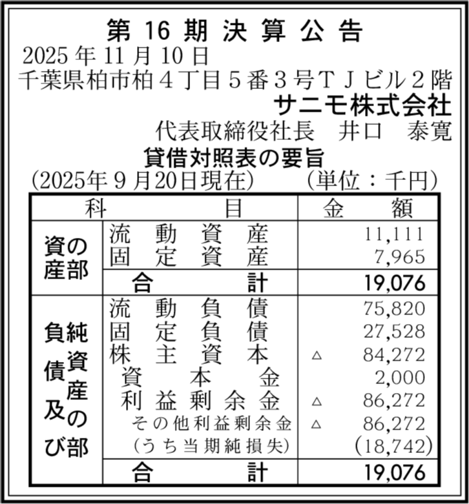 | 利益剰余金 | ▲8,627万2,000円 (赤字拡大) |