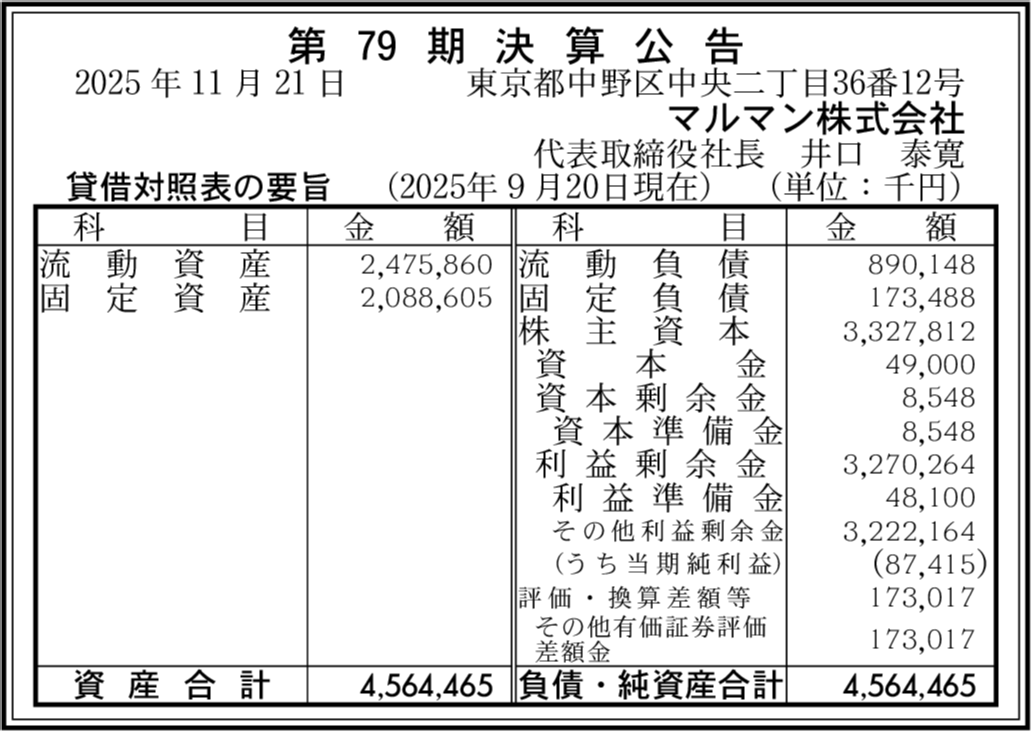 マルマンホールディングス株式会社 東京都中野区 【2024年9月期】 |