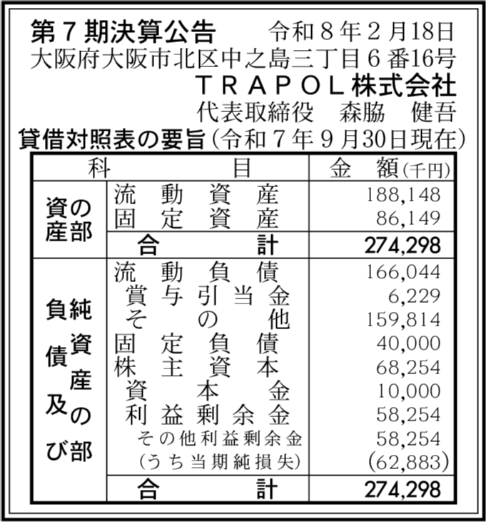 | 会社名 | TRAPOL株式会社 |