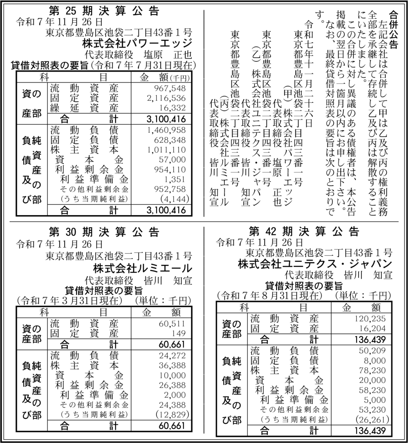 株式会社パワーエッジ 東京都豊島区 【2025年7月期】 |