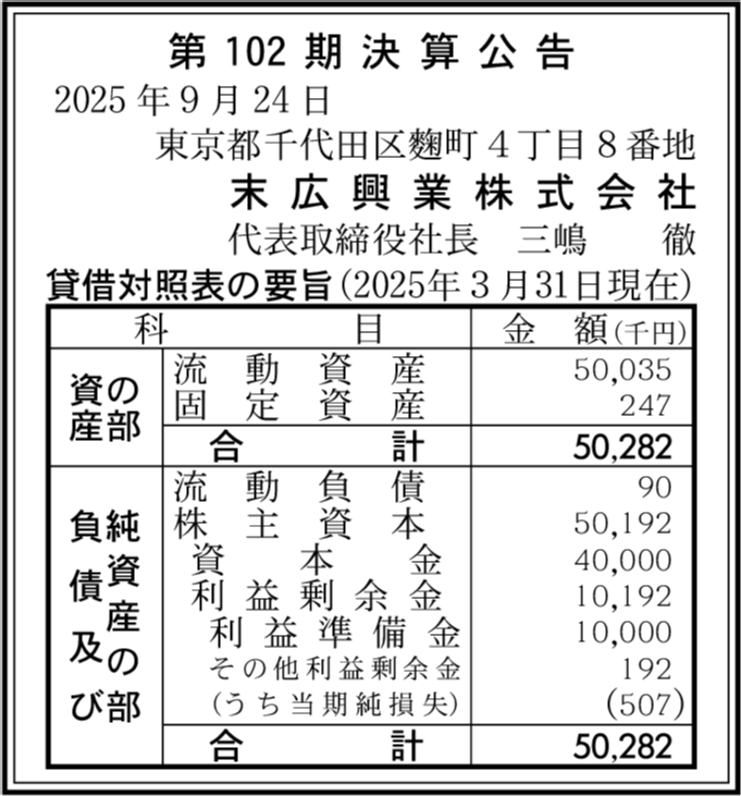 利益剰余金 | 1,019万2,000円 (▲4.75%) |