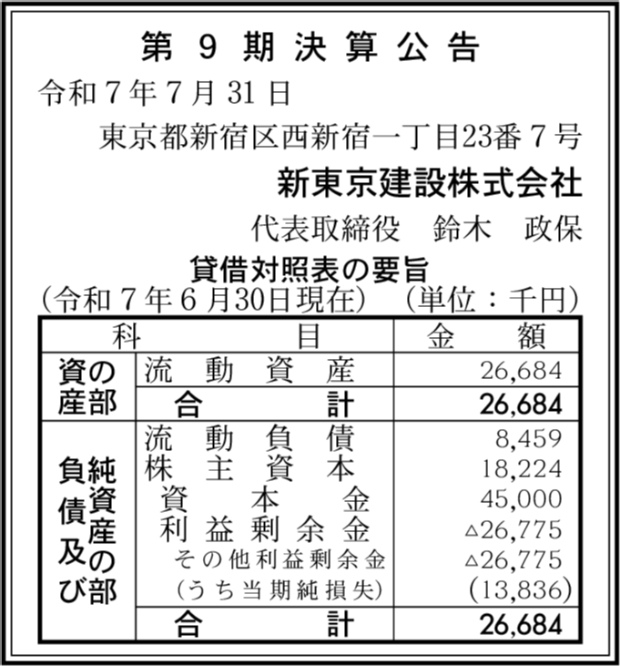 | 利益剰余金 | △2,677万5,000円 (赤字拡大) |