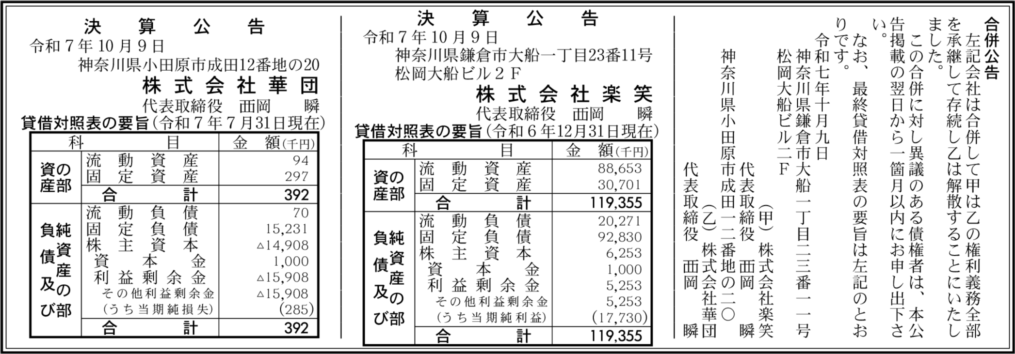 株式会社華団 神奈川県小田原市 【2025年7月期】 |