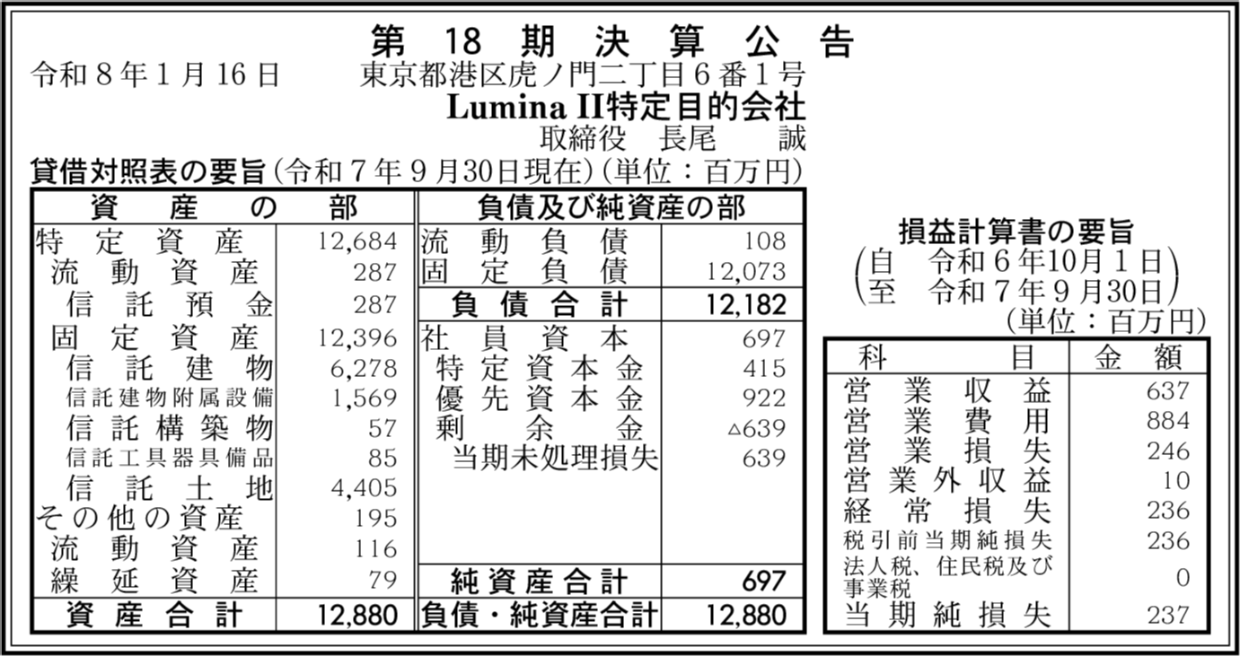 Lumina特定目的会社 東京都港区 【2025年9月期】 |