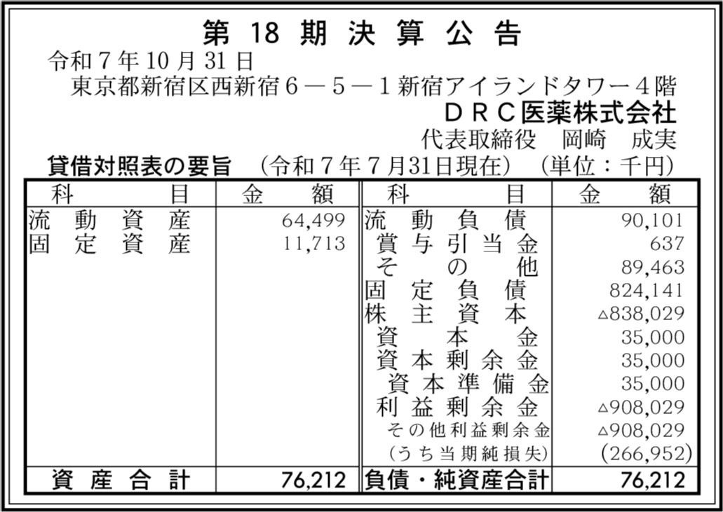 | 会社名 | DRC医薬株式会社 |