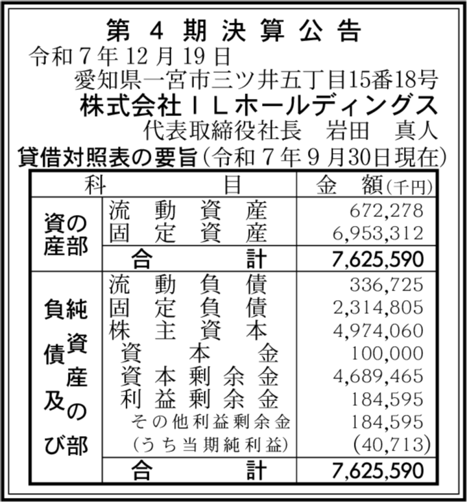 株式会社ILコントラクトパッケージング 愛知県一宮市 【2025年9月期】 |