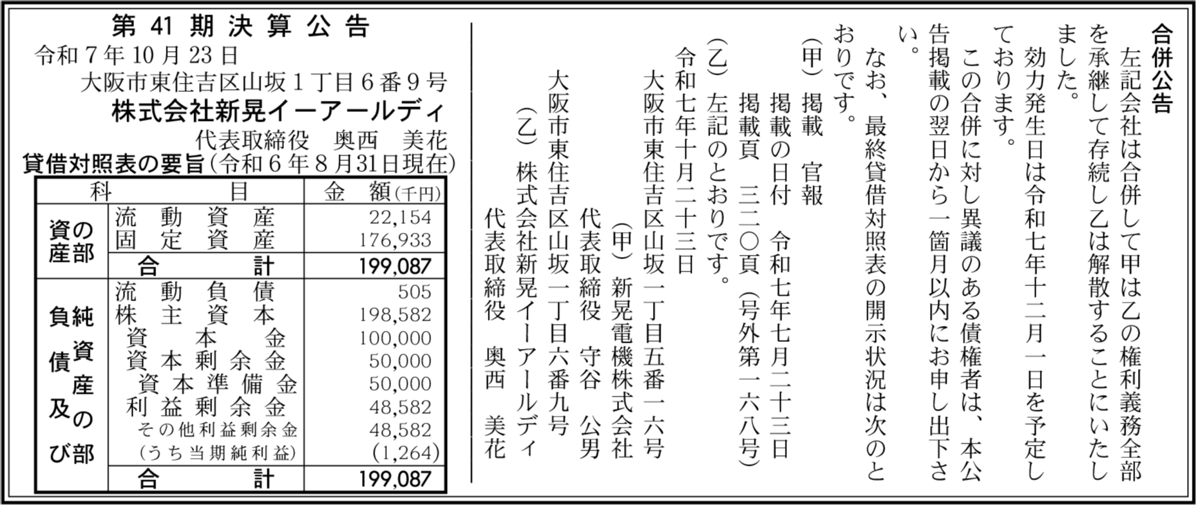 新晃電機株式会社 大阪市東住吉区 【2025年2月期】 |