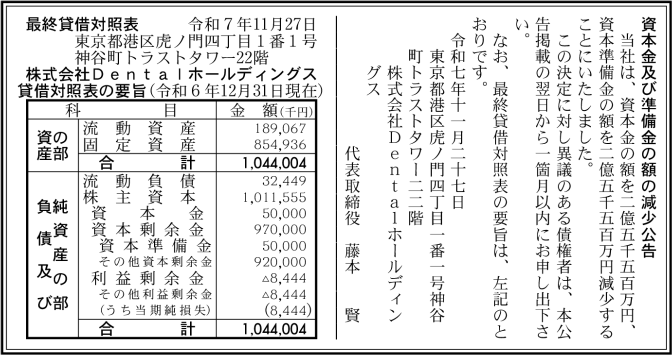 | 会社名 | 株式会社Dentalホールディングス |