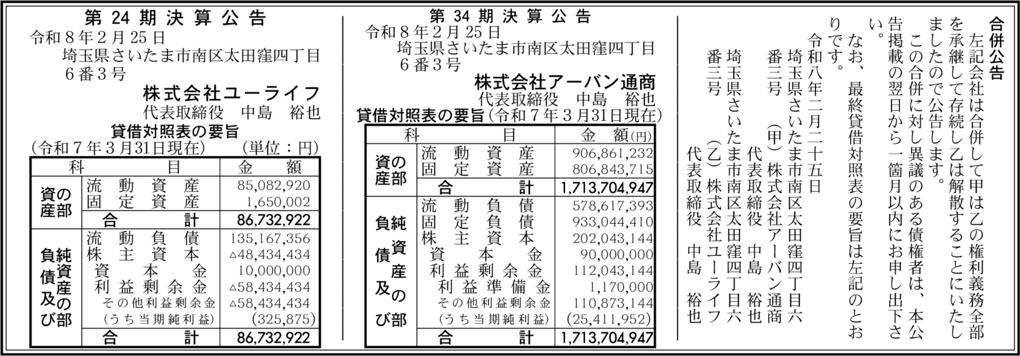 株式会社ユーライフ 埼玉県さいたま市南区 【2025年3月期】 |