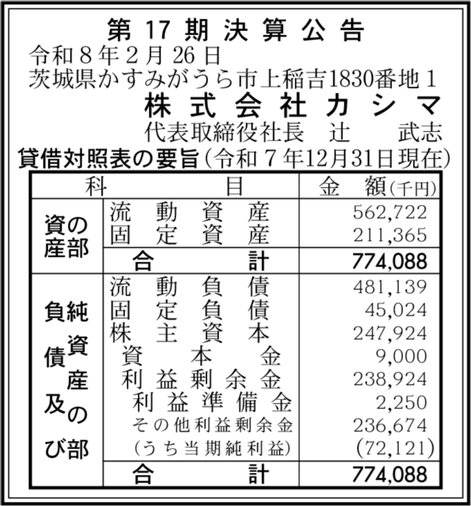 株式会社カシマ 茨城県かすみがうら市 |