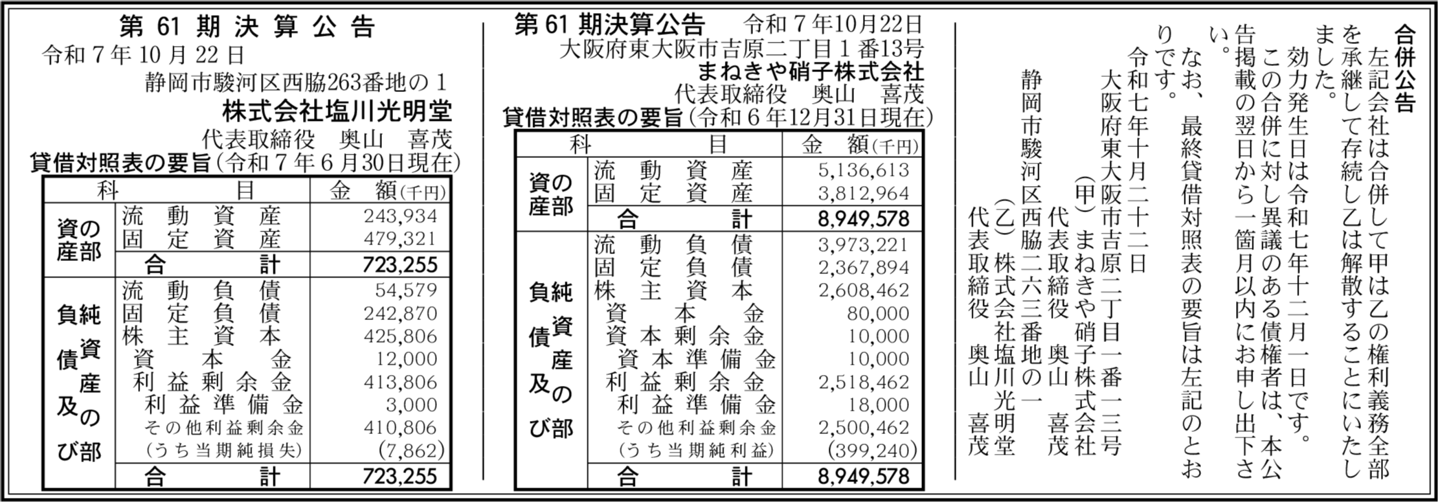 株式会社塩川光明堂 静岡市駿河区 【2025年6月期】 |