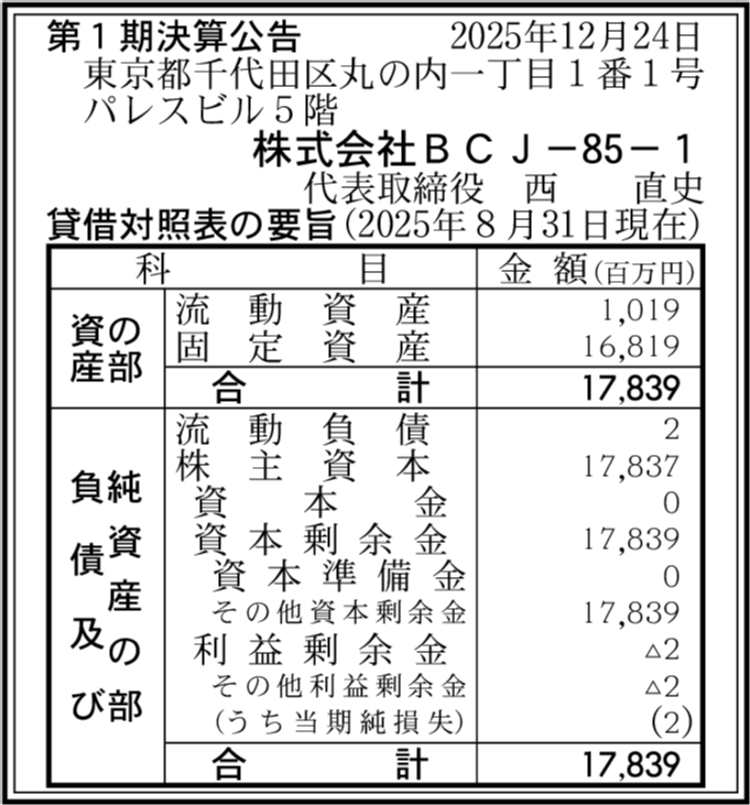 株式会社BCJ‐86 東京都千代田区 【2025年8月期】 |
