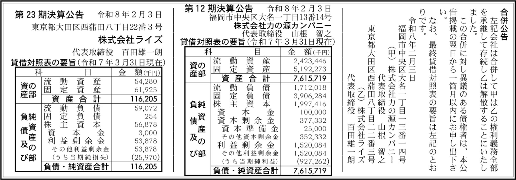 レイジーフーズ株式会社 福岡市中央区 【2025年7月期】 |