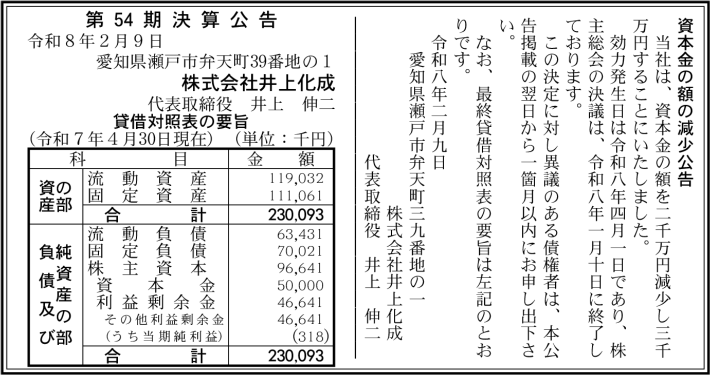 | 会社名 | 株式会社井上化成 |