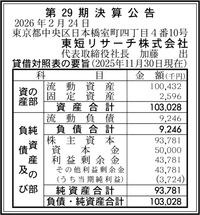 東京短資株式会社 東京都中央区 【2025年11月期】 |