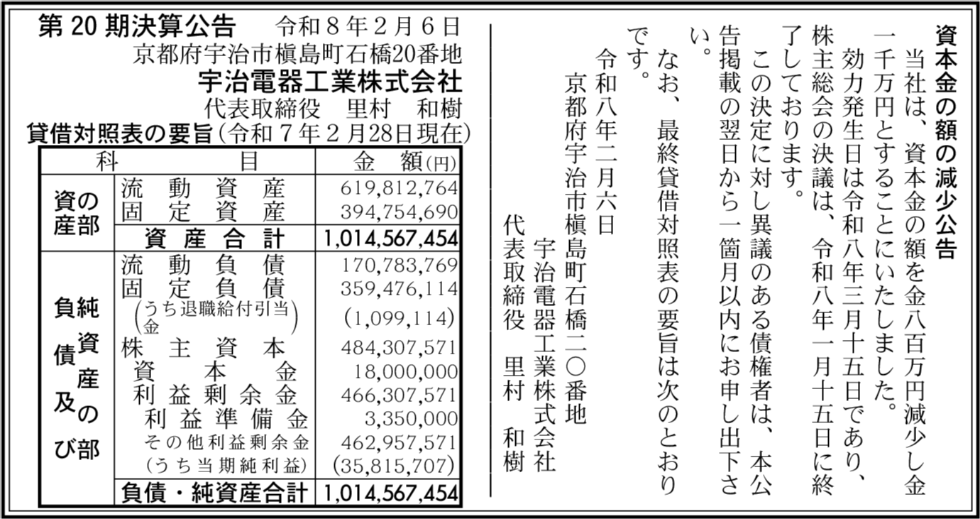 | 会社名 | 宇治電器工業株式会社 |