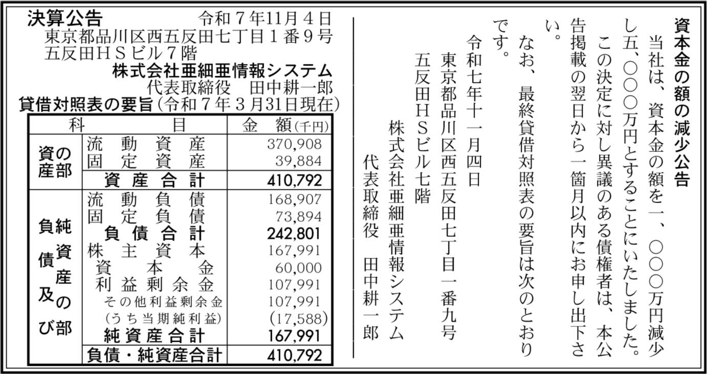 | 会社名 | 株式会社亜細亜情報システム |