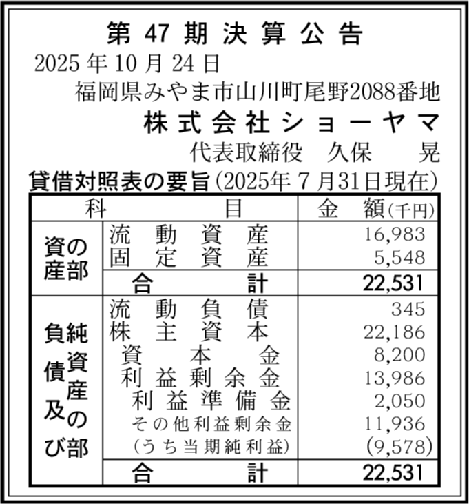 | 会社名 | 株式会社ショーヤマ |