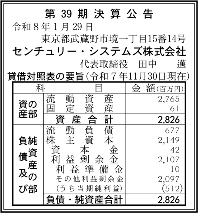 | 会社名 | センチュリー・システムズ株式会社 |