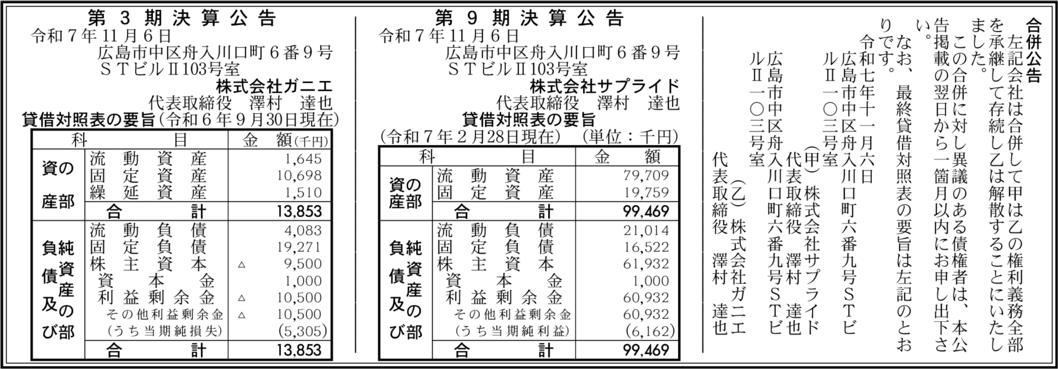 株式会社ガニエ 広島市中区 【2024年9月期】 |