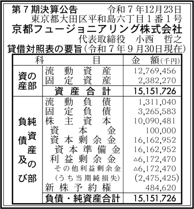 | 会社名 | 京都フュージョニアリング株式会社 |