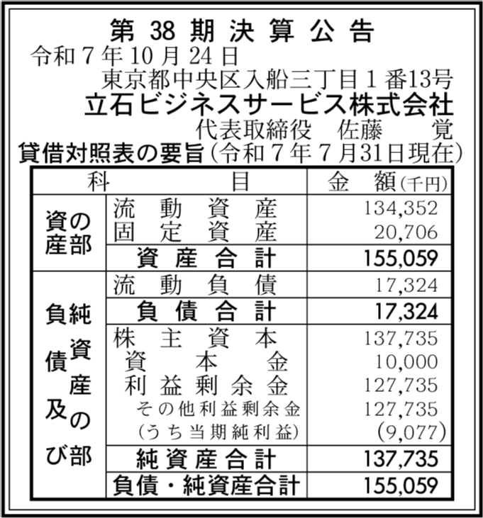 | 会社名 | 立石ビジネスサービス株式会社 |
