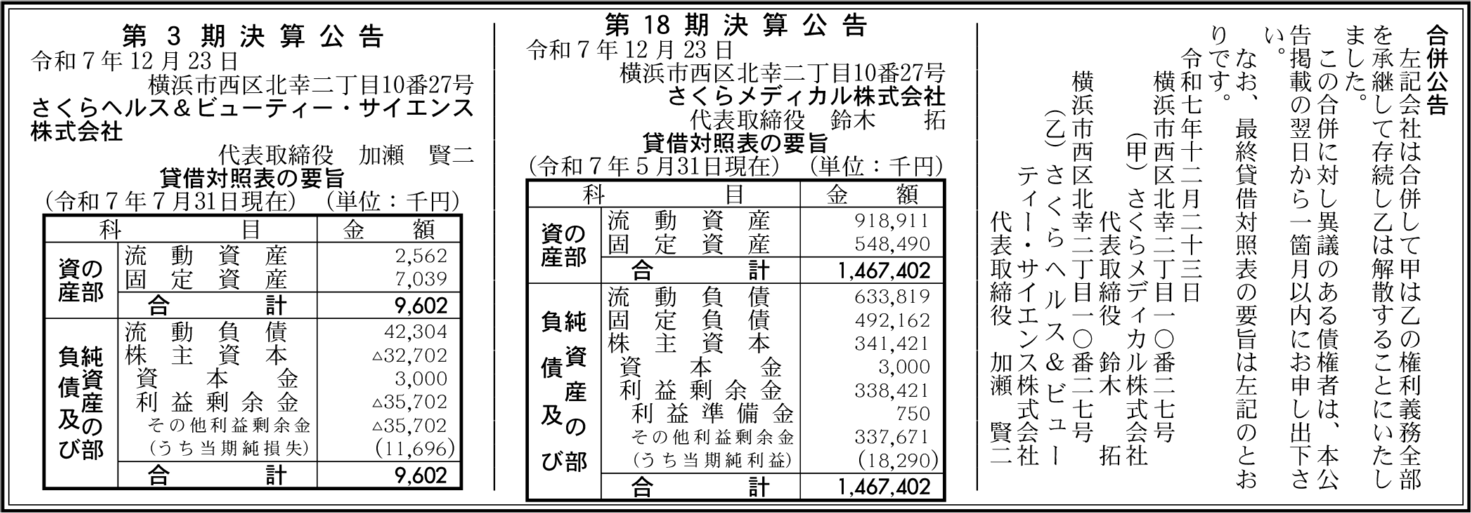 さくらヘルス&ビューティー・サイエンス株式会社 横浜市西区 【2025年7月期】 |