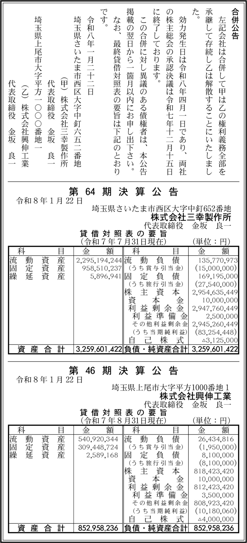 株式会社興伸工業 埼玉県上尾市 【2025年8月期】 |