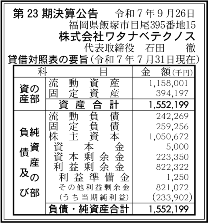 株式会社エヌ・テクノス閉鎖済み 福岡県飯塚市 【2022年8月期】 |
