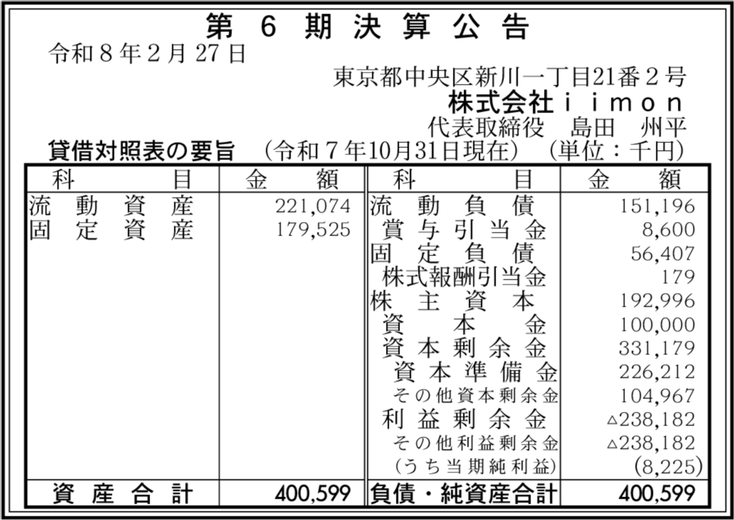 | 会社名 | 株式会社iimon |